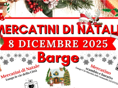 L'8 Dicembre 2025 arriva il mercatino di natale nel centro storico di Barge, unendo tradizione e l'atmosfera da fiaba tra luci scintillanti, prodotti artigianali e tipici, tra cui vin brule, cioccolata calda, caldarroste  e street food!