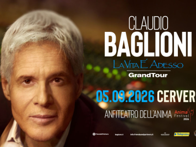 Sabato 5 settembre sul palco dell'Anima Festival, nella suggestiva cornice dell'Anfiteatro dell'Anima a Cervere, Claudio Baglioni in concerto con “GrandTour
