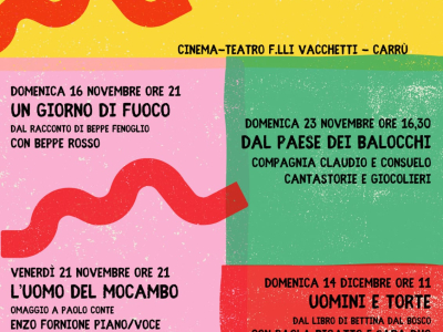 Arriva a Carrù una nuova stagione teatrale dal titolo “Fritto Misto”. Un nome curioso e gustoso, per una rassegna che mescola generi e linguaggi diversi: narrazione, musica, teatro comico e spettacoli per famiglie. Il cartellone prevede quattro appuntamenti al Teatro F.lli Vacche