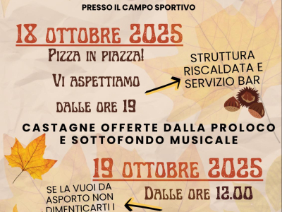 La Pro Loco Sant'Anna Collarea organizza la "Castagnata a Sant'Anna Collarea"! Si inizia sabato 18 ottobre con la pizza in piazza dalle ore 19:00. Si continua domenica 19 con la polentata (dalle ore 12:00) e le caldarroste (dalle ore 14:00).