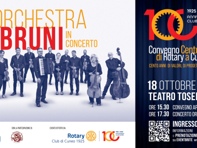 Il Rotary Club di Cuneo 1925 celebra il suo centenario con un grande evento aperto alla cittadinanza che si terrà sabato 18 ottobre presso il teatro Toselli di Cuneo. La giornata si aprirà alle 15 con l’accoglienza e la registrazione dei partecipanti.