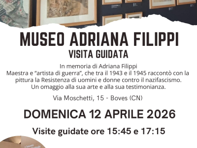 Domenica 12 aprile visite guidate al Museo Adriana Filippi di Boves alle 15:45 e 17:15 dedicate ad Adriana Filippi, maestra e “artista di guerra”, che tra il 1943 e il 1945 raccontò con la pittura la Resistenza di uomini e donne contro il nazifascismo .