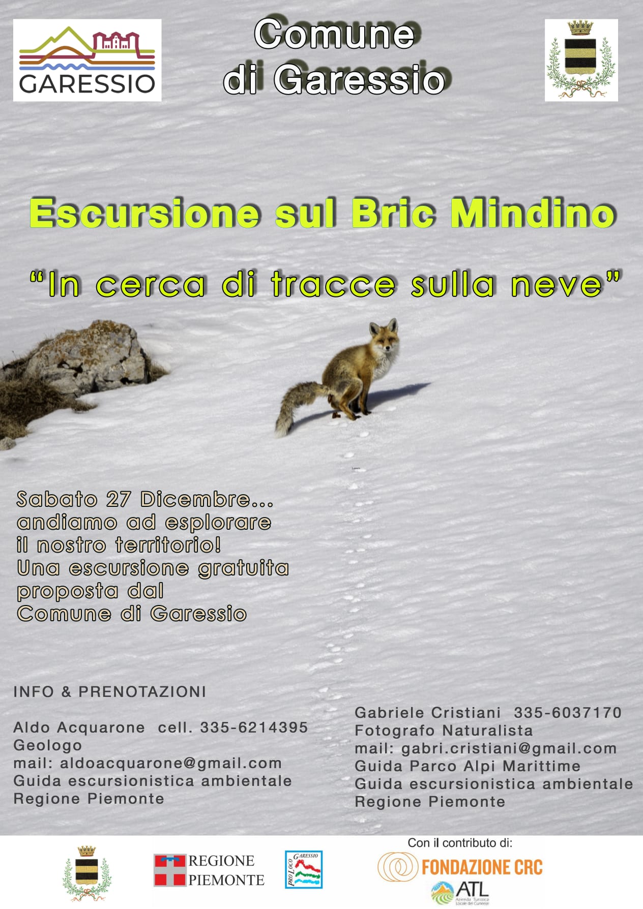 Il comune di Garessio propone un'escursione gratuita sul Bric Mindino, per esplorare il territorio e cercare di avvistare animali in compagnia di due guide esperte, sabato 27 dicembre.