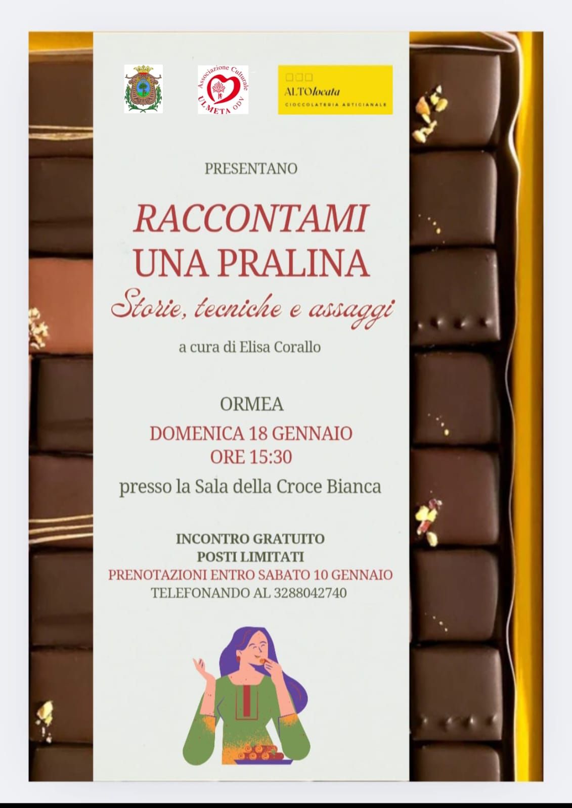 Periodo: 18/01/2026 Località: Ormea Domenica 18 gennaio alle ore 15.30, presso la Sala della Croce Bianca, avrà luogo un dolce incontro con Elisa Corallo. Informazioni Ass. Culturale Ulmeta - Le Ragazze di Ormea+39 328 8042 740