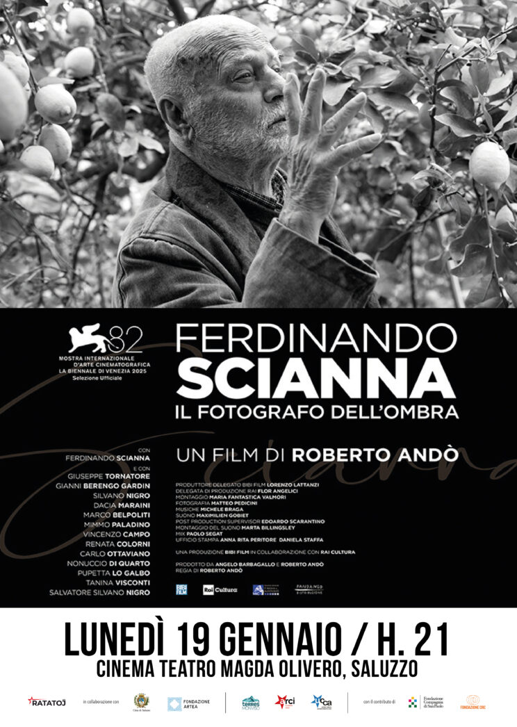 Lunedì 19 gennaio, alle ore 21.00, presso il Cinema Teatro Magda Olivero di Saluzzo, nell'ambito della mostra dedicata a Ferdinando Scianna, la Fondazione Artea organizza la proiezione del documentario "Ferdinando Scianna. Il fotografo dell'ombra" diretto da Roberto Andò. Ingresso libero fino ad esaurimento posti, apertura al pubblico alle ore 20.30.