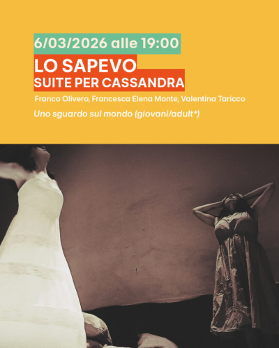 Venerdì 6 marzo alle 19.00 a Cuneo, presso l'ex chiesa di Santa Chiara (via Savigliano), "Lo sapevo - Suite per Cassandra", uno spettacolo di musica, movimento e parole per dare voce all’inascoltata Cassandra, tratto dal romanzo di Christa Wolf. Il programma completo della rassegna è disponibile sul sito ufficiale.