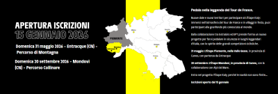 La passione per il ciclismo e la valorizzazione del territorio si incontrano nella Granfondo Alpi del Mare, un evento che si unisce a "L'Etape", un evento legato al mitico Tour de France. La manifestazione si terrà domenica 31 maggio a Entracque in una tappa di montagna di 130 km (dislivello 2.500 metri) con partenza da Entracque e due giorni di festa nel «village» dedicato. Iscrizioni qui. Ulteriori dettagli in merito allo svolgimento della giornata presto disponibili.