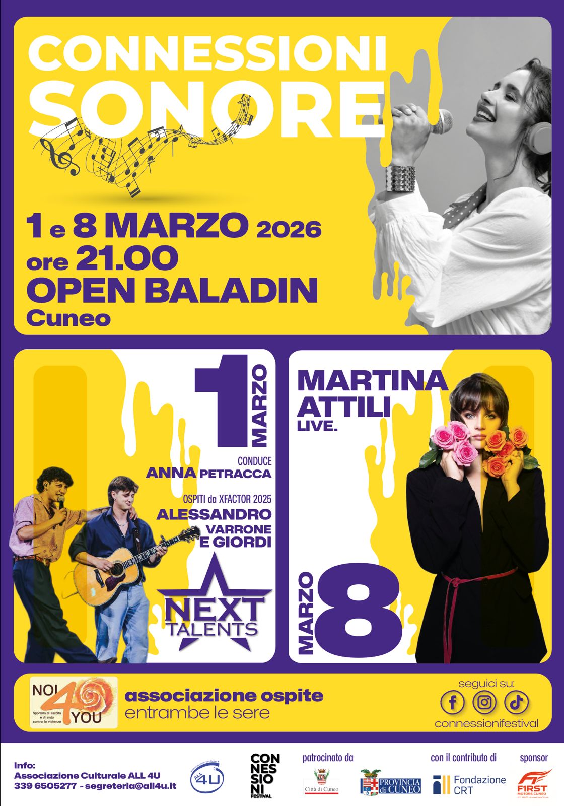 Domenica 1 e 8 marzo, presso l’Open Baladin di Cuneo, si terrà la prima edizione di “Connessioni Sonore”, evento dedicato alla musica indipendente e al cantautorato italiano. Due serate che vedranno protagonisti i giovani artisti del territorio piemontese e non solo. Le due serate sono ad ingresso gratuito.