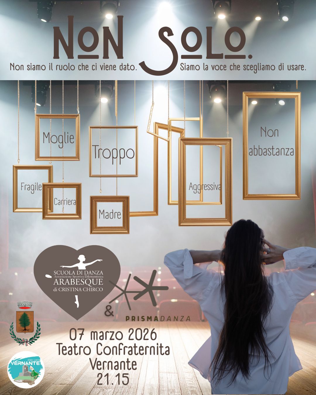 Sabato 7 marzo alle 21.15 al Teatro Ex Confraternita di Vernante va in scena NON SOLO, uno spettacolo di danza, teatro, musica e canto dedicato alle donne, ma aperto a un pubblico di ogni genere. Ingresso gratuito.