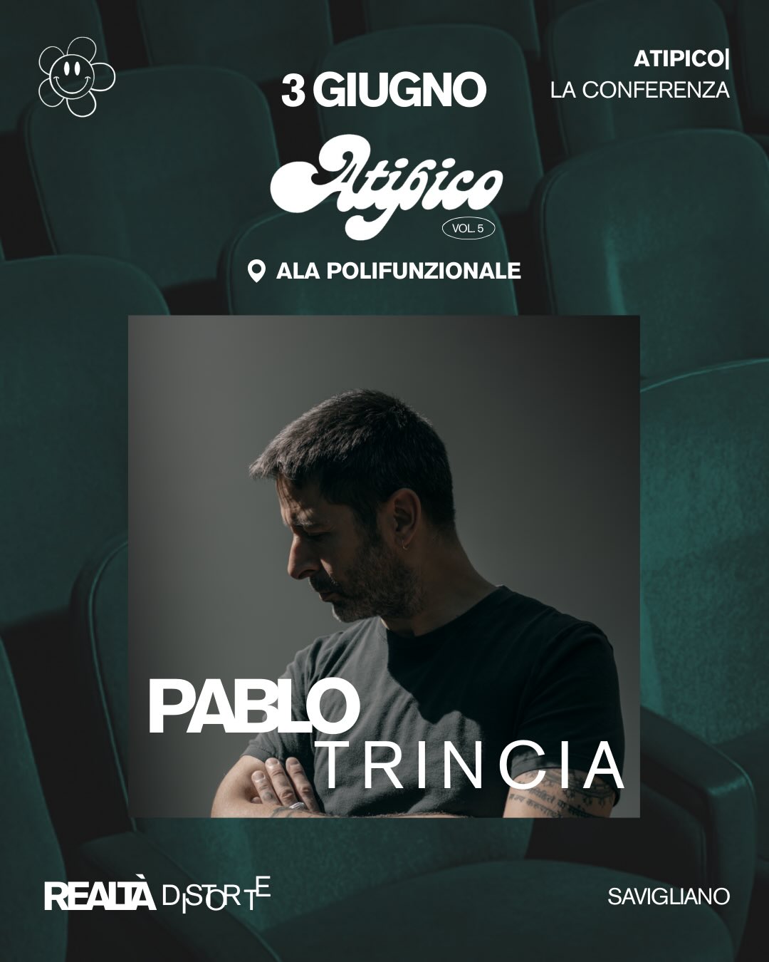 Mercoledì 3 giugno, alle ore 21.00, presso l'Ala Polifunzionale di Savigliano, nell'ambito di "Atipico Festival" si terrà un incontro con il giornalista, autore e podcaster Pablo Trincia. Il costo del biglietto è di 15 euro a persona e la prenotazione è obbligatoria.