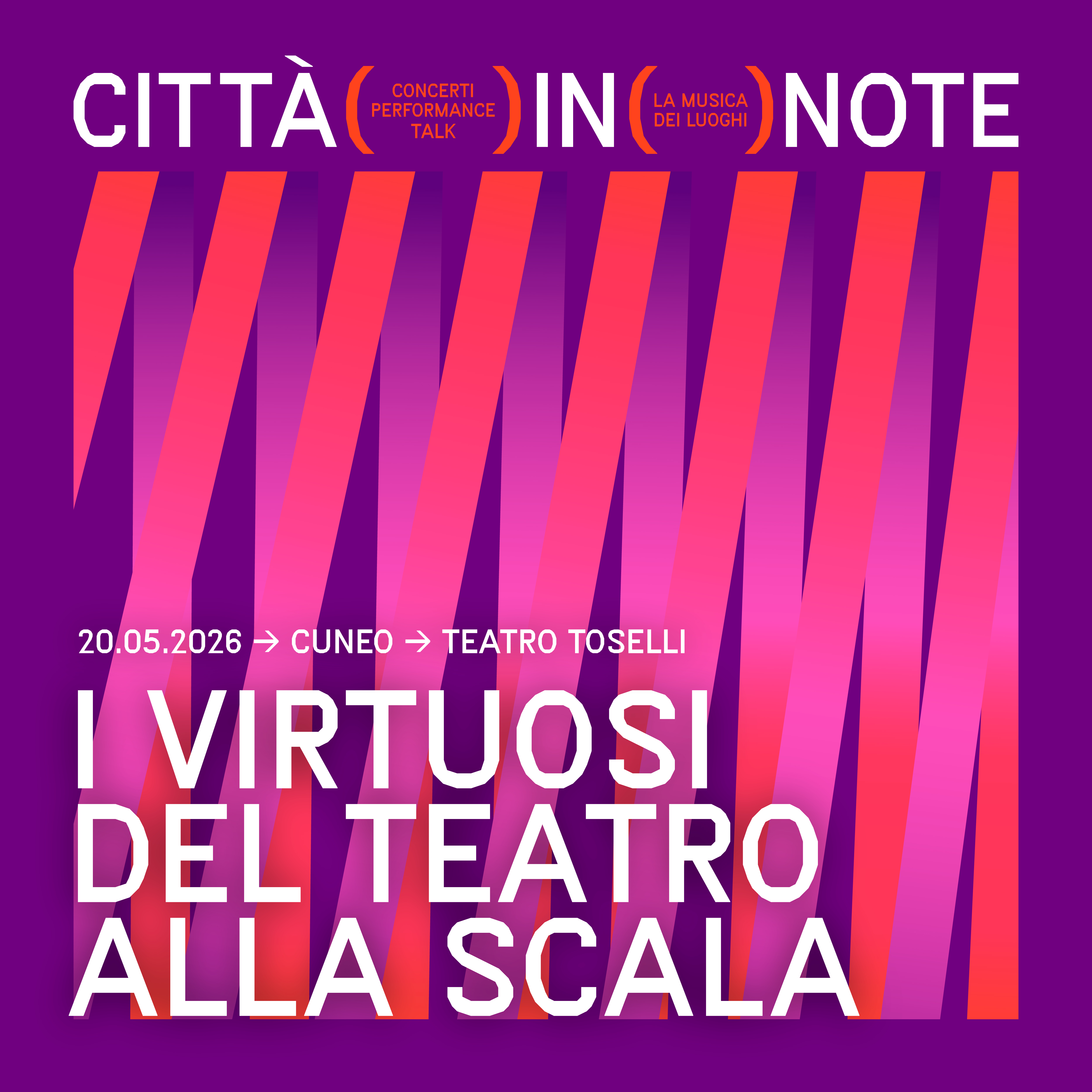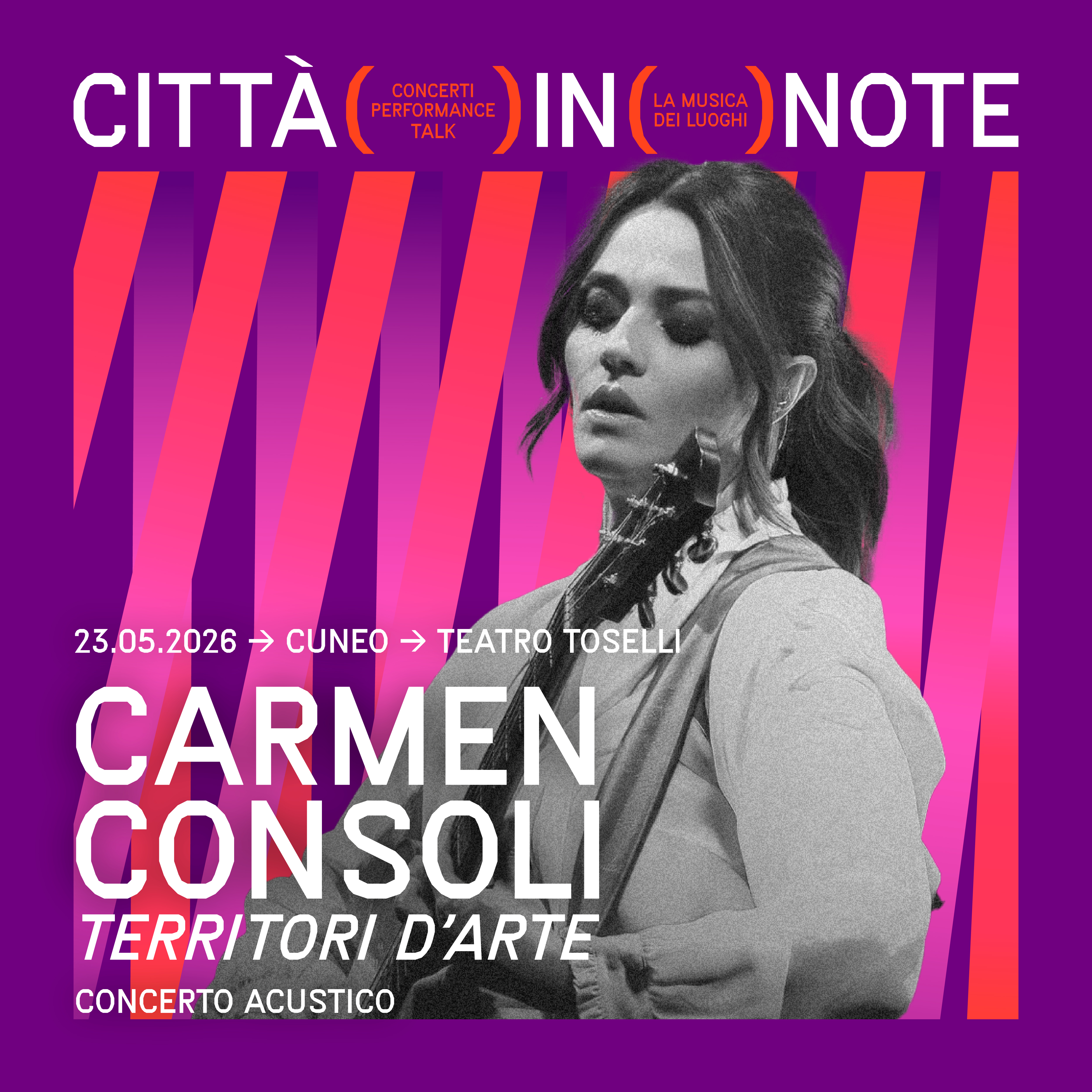 Sesta edizione per l’appuntamento più atteso della primavera cuneese: il festival “Città in note. La musica dei luoghi” torna dal 20 al 25 maggio ad animare il capoluogo della provincia Granda. Concerti, performance, workshop e incontri trasformeranno i più suggestivi luoghi della città in palcoscenici vibranti mettendone in luce il grande valore storico, architettonico e naturale. Programma disponibile qui.